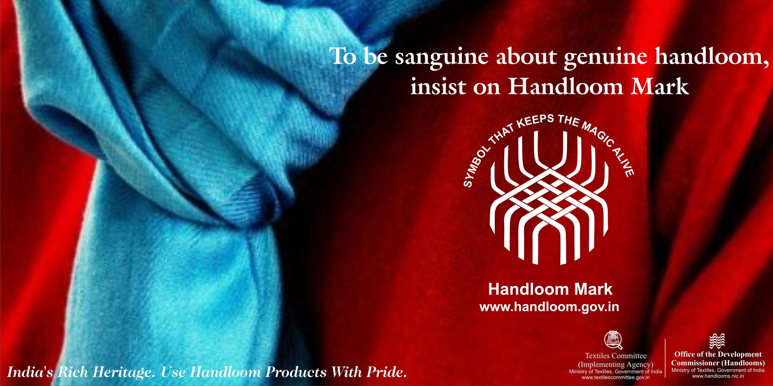 The ‘Handloom Mark’ is a symbol of the rich legacy and tradition of Indian Handloom textiles. The Mark is aimed to promote the brand of handlooms and develop a niche market for the handloom textiles with a distinct identity. The Mark is also a symbol of social cause to promote the livelihood, welfare, and growth of more than 6.5 million weavers. This will enable the age-old traditional handloom industry to cherish their skills/craftsmanship and sustain in the competitive market.